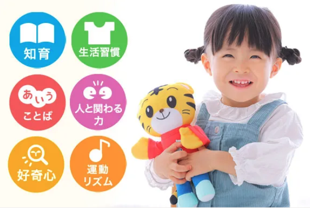 年齢に合った知育玩具や絵本、映像コンテンツを通じて、お子さまの好奇心を刺激しながら、言葉や生活習慣、思いやりの心を育てることを目指しています。特に、手指を使って遊ぶおもちゃや、発語を促すしかけが豊富に含まれており、楽しみながら自然と学べるのが特徴です。