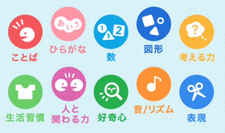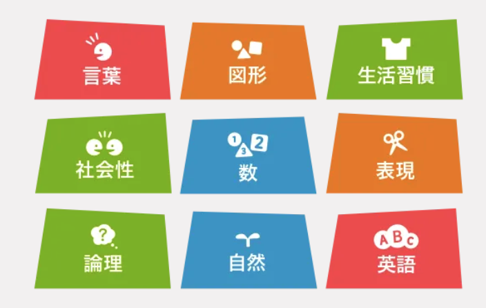 年齢に応じた多彩な教材を通じて、言葉・数・社会性・生活習慣などを総合的に学べるのが特徴です。
